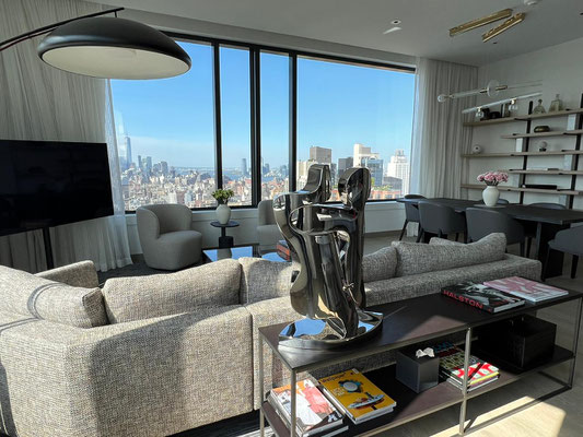 A designer art-filled Penthouse on the luxurious private 40th floor of the Ritz Carlton Nomad with unsurpassed views over Manhattan. Situated in one of NYC's hottest neighborhoods, enjoy five star service and panoramic views from the Hudson to the East River, from the Empire State and Chrysler Buildings down to the One World tower to the Statue of Liberty.
